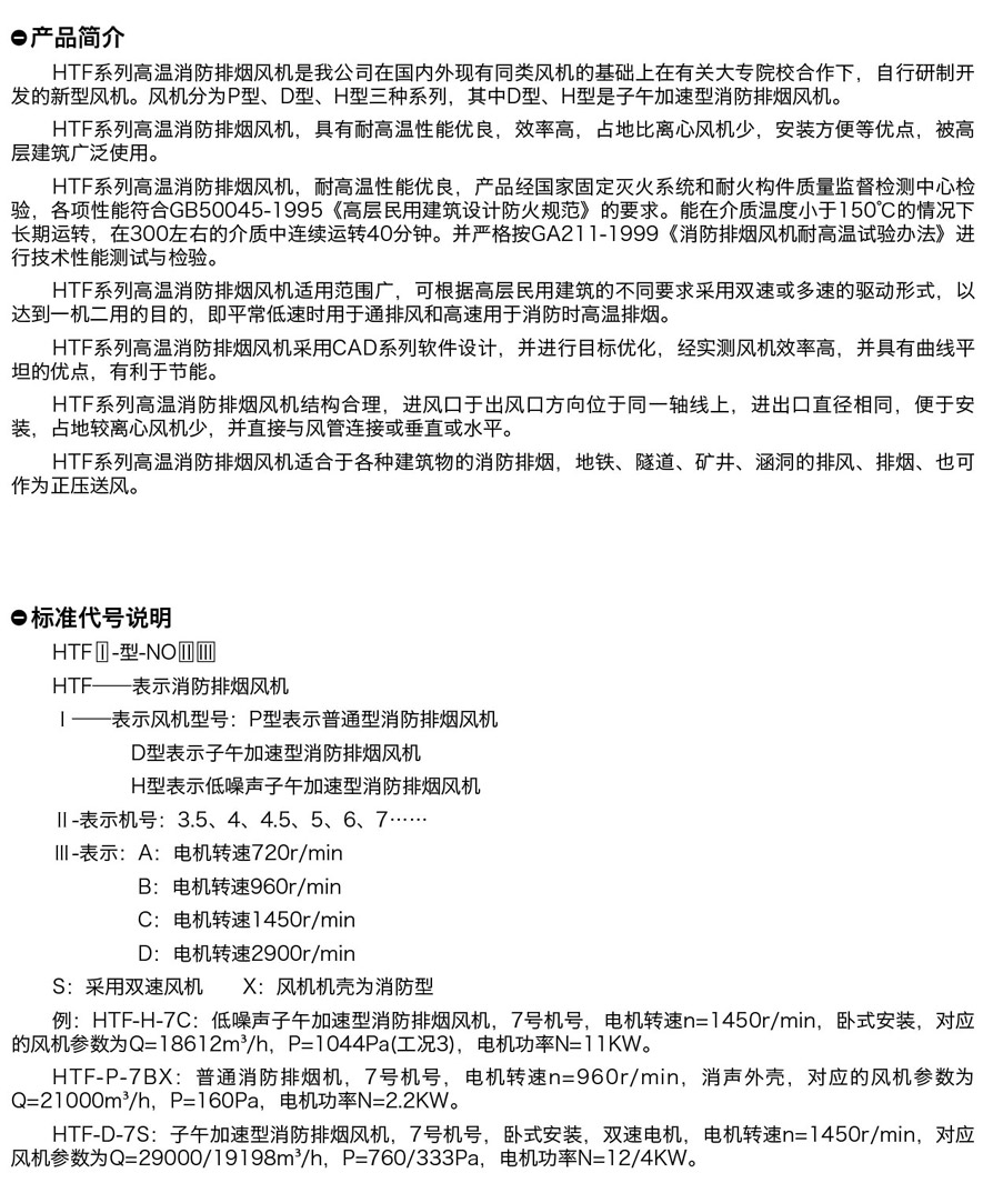 HTF-H型子午加速消防排煙風機,是介于離心風機和軸流式風機之間的一種新型風機,它具有效率高、矂 聲底、安裝方便等特點。 可廣泛用于工業(yè)、民用建筑通風。能在28CTC左右環(huán)境中正常運轉(zhuǎn)1小時,既能作通風 又能作消防排煙等雙重作用,適用于地下隧道、地下商場、地下倉庫等消防配套設施,深受設計人員和用戶的歡 迎。