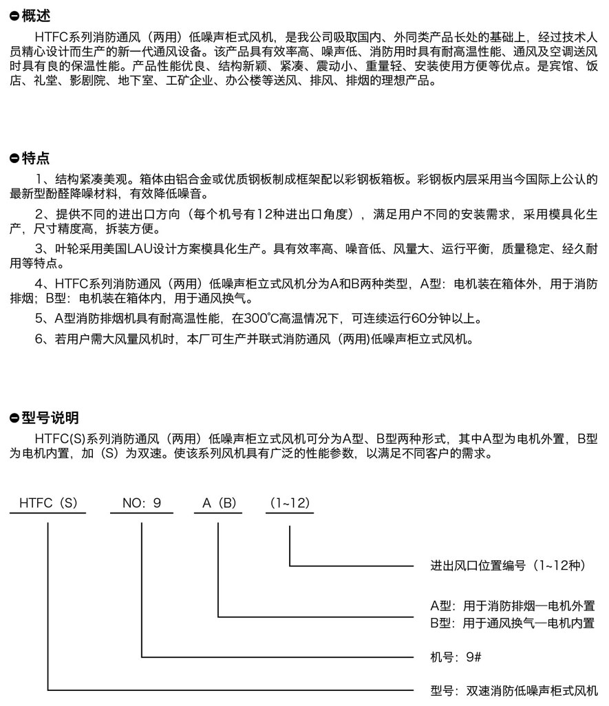 HTFC系列消防通風(兩用)低噪聲柜式風機,是我公司吸取國內(nèi)、外同類產(chǎn)品長處的基礎上,經(jīng)過技術人 員精心設計而生產(chǎn)的新一代通風設備。 該產(chǎn)品具有效率高、噪聲低、消防用時具有耐高溫性能、通風及空調(diào)送風 時具有良的保溫性能。