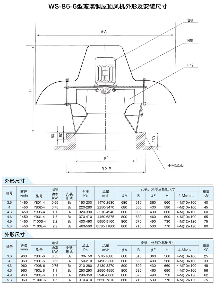 WS-85-6型系列玻璃鋼屋頂風(fēng)機(jī)是國內(nèi)外先進(jìn)的屋頂排風(fēng)設(shè)備,主要適用于賓館、飯店、影劇院、辦公 樓、實(shí)驗(yàn)室、廠房、住宅等建筑的通風(fēng)換氣。